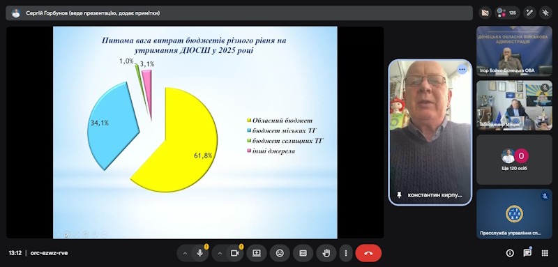 Особливу увагу під час засідання приділили діяльності дитячо-юнацьких спортивних шкіл. Так, станом на кінець 2025 року в області зареєстровано 37 ДЮСШ, із яких 33 є активними. Шість дитячо-юнацьких спортивних шкіл Донецької області мають статус «спеціалізована» (СДЮШОР, вони ж мають і вищу категорію), вищу категорію – одна ДЮСШ, першу – дев’ять, другу категорію – сімнадцять, без категорії – чотири. У них займаються 5353 учні та працюють 294 тренери-викладачі, з яких 173 штатні.